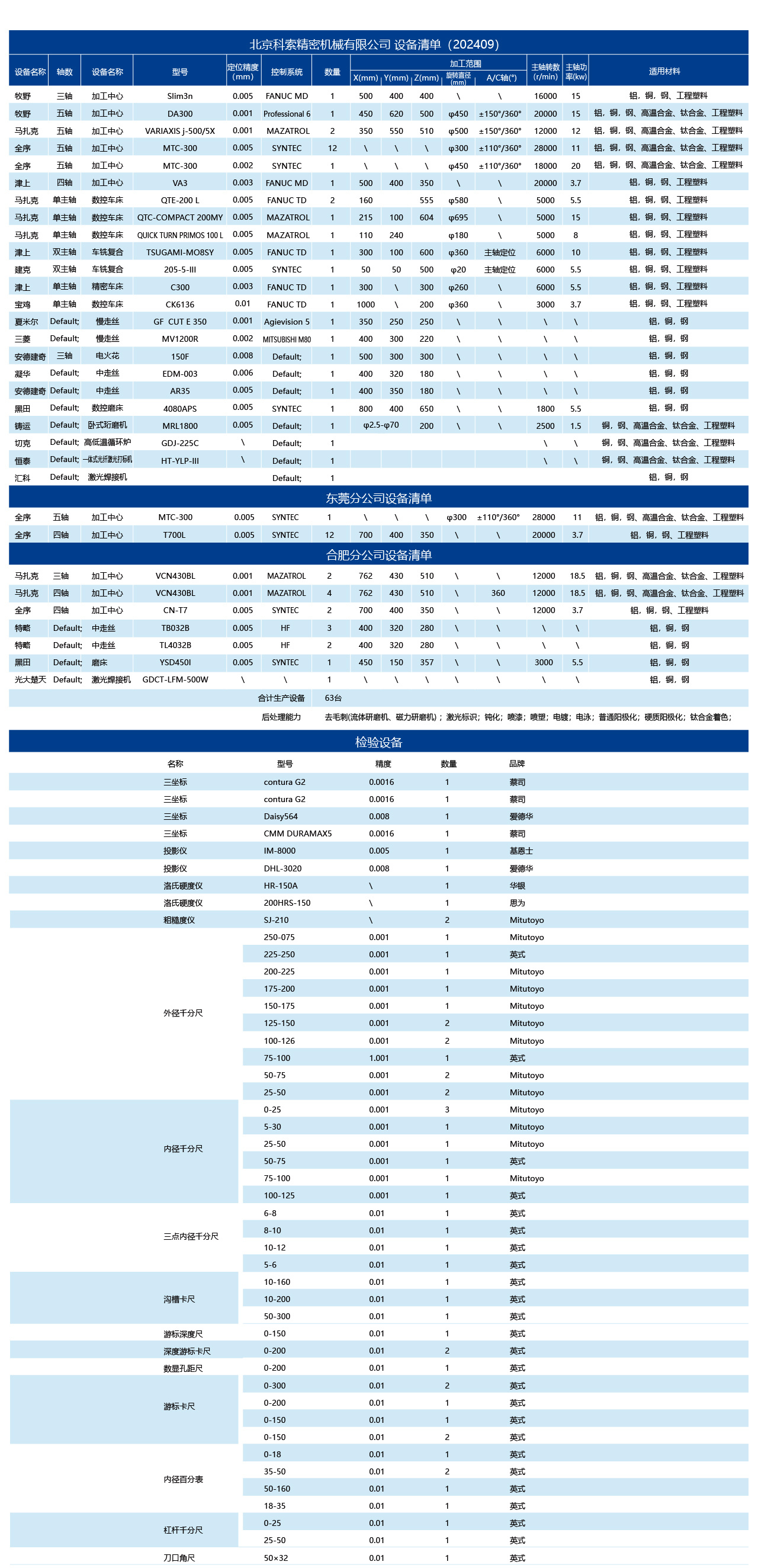 完善的機(jī)床配置High prototype manufacturing capability機(jī)床配置